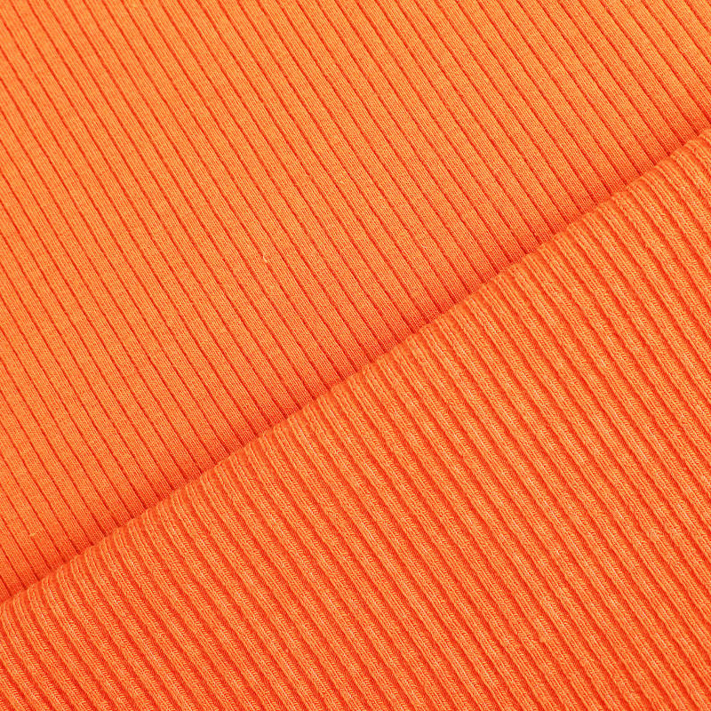 The structure of modal + cotton spandex 2*2 rib fabric is characterized by lightness, softness and elasticity, which is suitable for consumers who pursue a comfortable wearing experience. The warp knitting is arranged in two positive and two negative, with clear texture and excellent elasticity, which can enhance the horizontal and vertical rebound effect of the fabric. This structure not only makes the finished garment more close-fitting, but also enhances the covering and wear resistance of the clothing. It is widely used in the production of various types of clothing such as vests, T-shirt collars, cuffs, underwear, sportswear, etc.