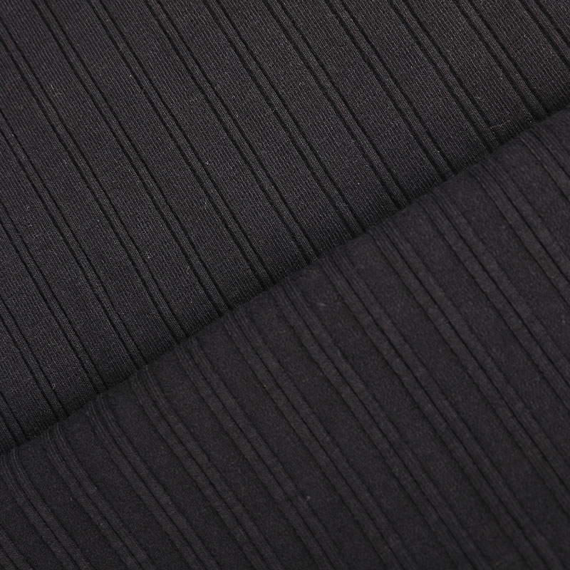 The drawstring ribbing technology is adopted, and the lateral elasticity is better than the traditional single-sided ribbing. The pattern is unique and fits the body curve. Its double-sided symmetrical structure effectively avoids curling and unraveling problems, and is suitable for making slim-fitting clothing.