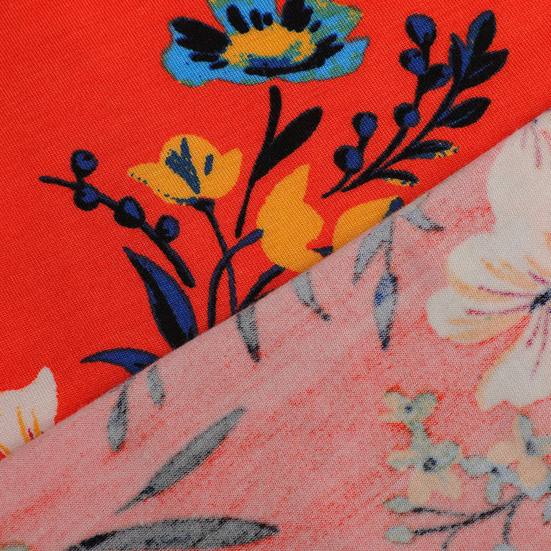 Rayon stretch jersey: A clever combination of rayon and spandex, it is a popular fabric for all seasons. It has excellent moisture absorption, fits the skin and brings a cool experience. It has a smooth texture, strong breathability, anti-static, UV protection, bright colors, and excellent color fastness. It combines the softness of cotton and the luster of silk, which is a gift from nature, beyond the gift of nature.